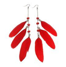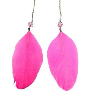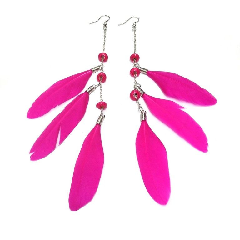 S_600757E - EARRINGS 3 FEATHERS with beads FUCHSIA (1st)