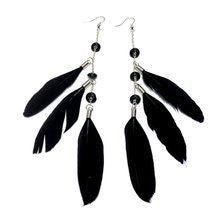 S_600757F - EARRINGS 3 FEATHERS with beads BLACK (1st)