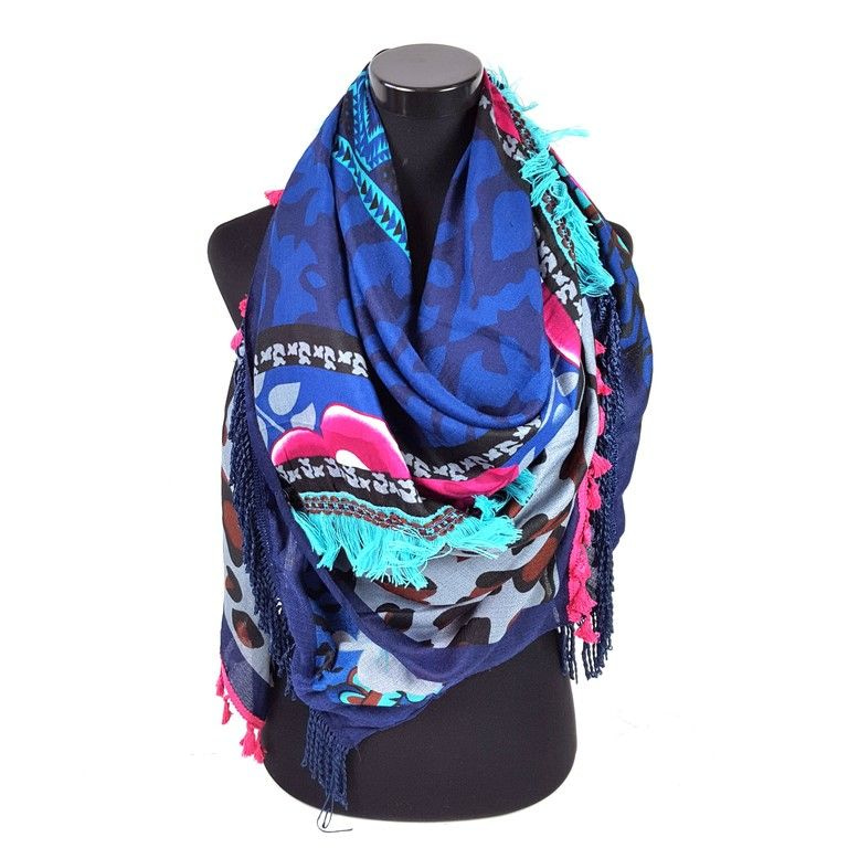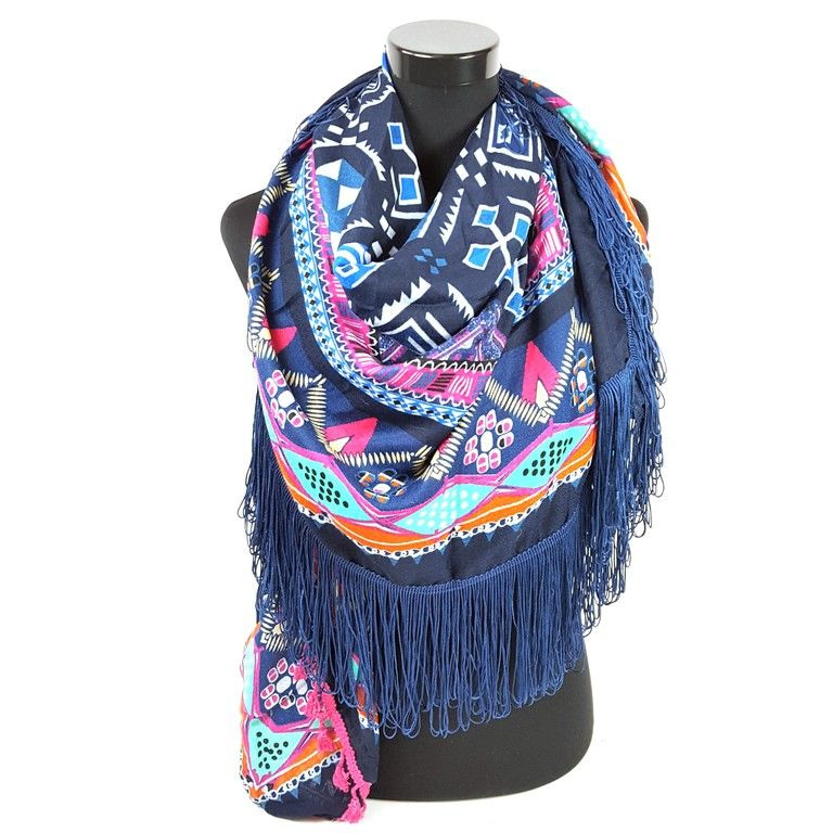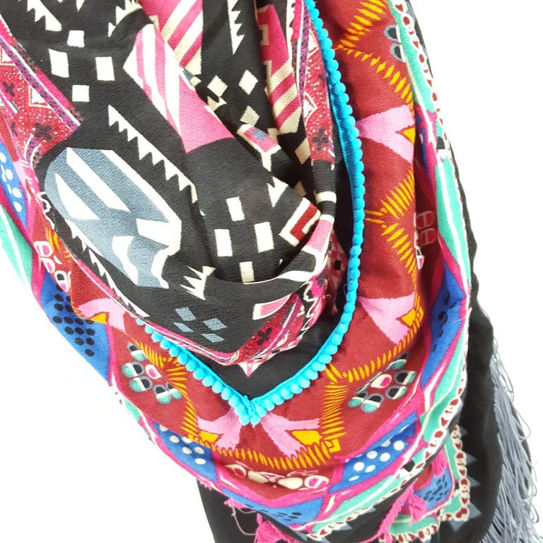 S_2546209 - TRIANGLE SCARF BLUE / GREEN / PINK AZTEK FRILLS & BRUSH (1st)
