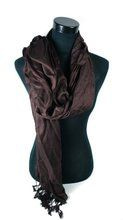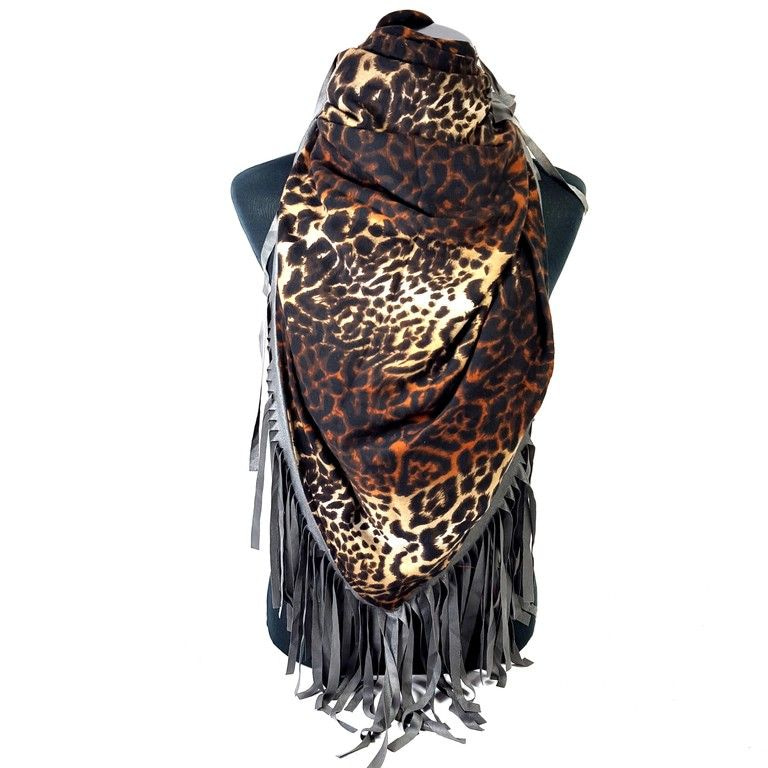 S_62153D - TRIANGLE SCARF BROWN TIGER PRINT WITH GREY FRILLS - MODEL AZTEK (1st)