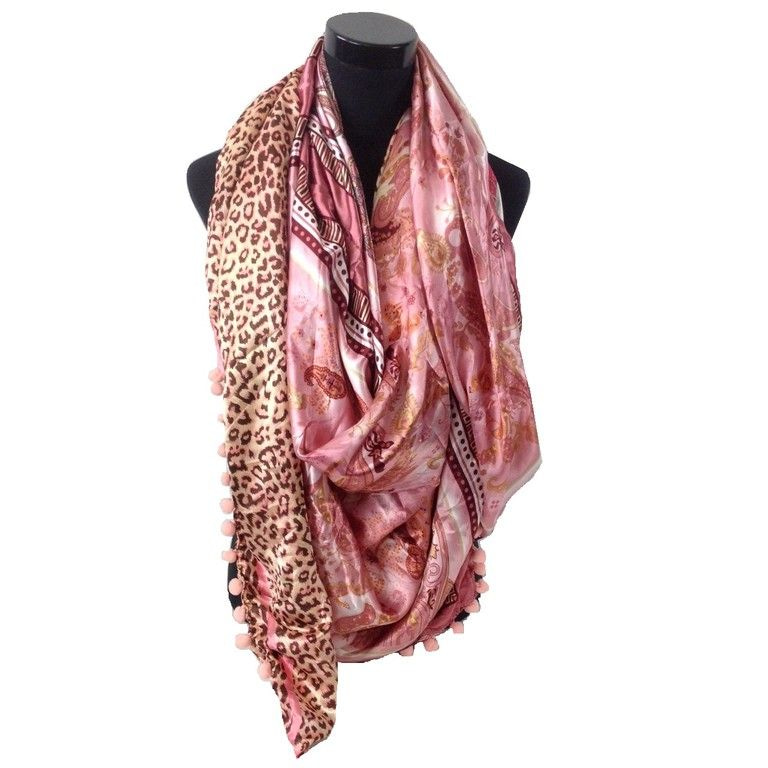 S_2149007IT - LUXE SCARF TRIANGLE 2-SIDED PINK PANTHER / FLOWER BULLETS (1st)