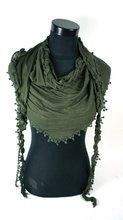 S_2546001 - TRIANGLE SCARF BLACK / GREEN / RED AZTEK FRILLS & BRUSH (1st)
