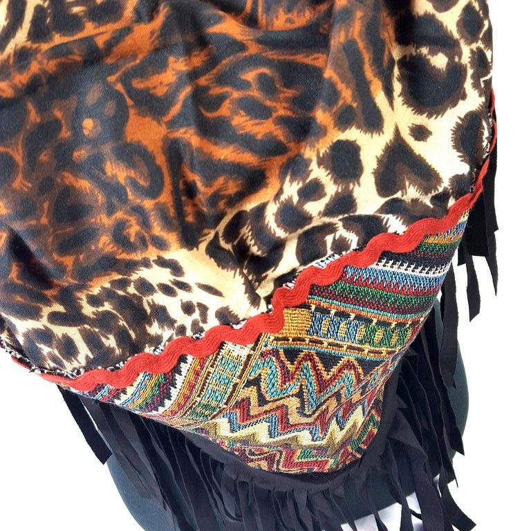 S_62153A - TRIANGLE SCARF BLACK / BROWN TIGER PRINT WITH FRILLS - MODEL AZTEK (1st)