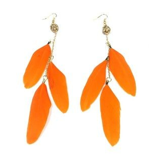S_600746C - EARRINGS WITH FEATHERS 3 BOLLETJE STRASS ORANGE (1st)