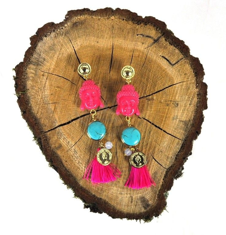 S_5672305 - IBIZA LOOK EARRINGS TURQUOISE / FUCHSIA BUDDHA (1st)