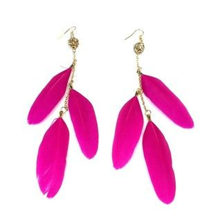 S_600746B - EARRINGS 3 FEATHERS WITH RHINESTONE BOLLETJE FUCHSIA (1st)