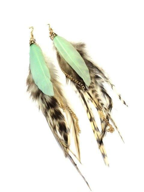 S_600746E - EARRINGS 3 FEATHERS WITH RHINESTONE BOLLETJE POISON GREEN (1st)
