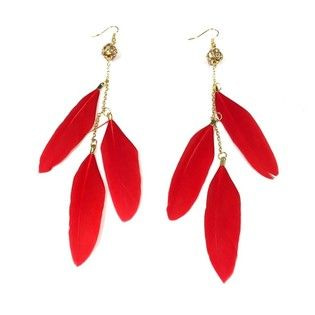 S_600746A - EARRINGS WITH FEATHERS 3 BOLLETJE STRASS RED (1st)