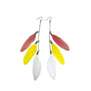 S_600750B - EARRINGS WITH 3 feathers PINK-YELLOW-WHITE (1st)