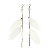 S_600747C - EARRINGS 2 FEATHERS WITH DIAMOND BEAD WHITE (1st)