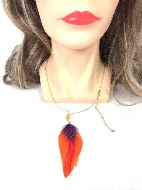 S_600025F - IBIZA LOOK NECKLACE ORANGE FEATHERS (1st)
