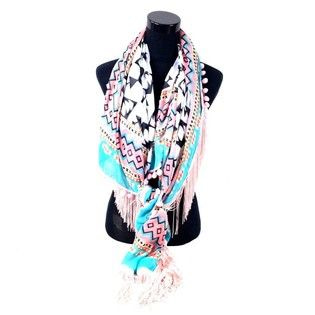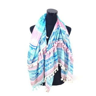 S_2394402B - LUXURY SCARF with tassels PINK / BLUE (1st)