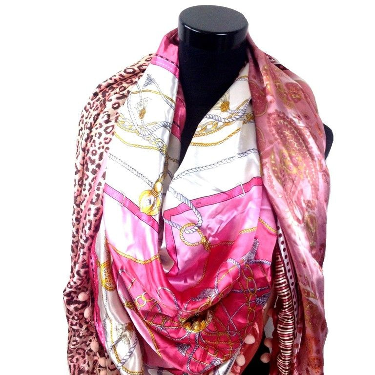 S_2149007GC - DELUXE 2-SIDED TRIANGLE SCARF PINK - PINK SCOOPS (1st)