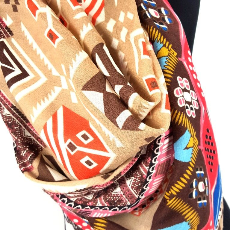 S_2546503 - TRIANGLE SCARF TAUPE / RED STONE AZTEK FRILLS & BRUSH (1st)