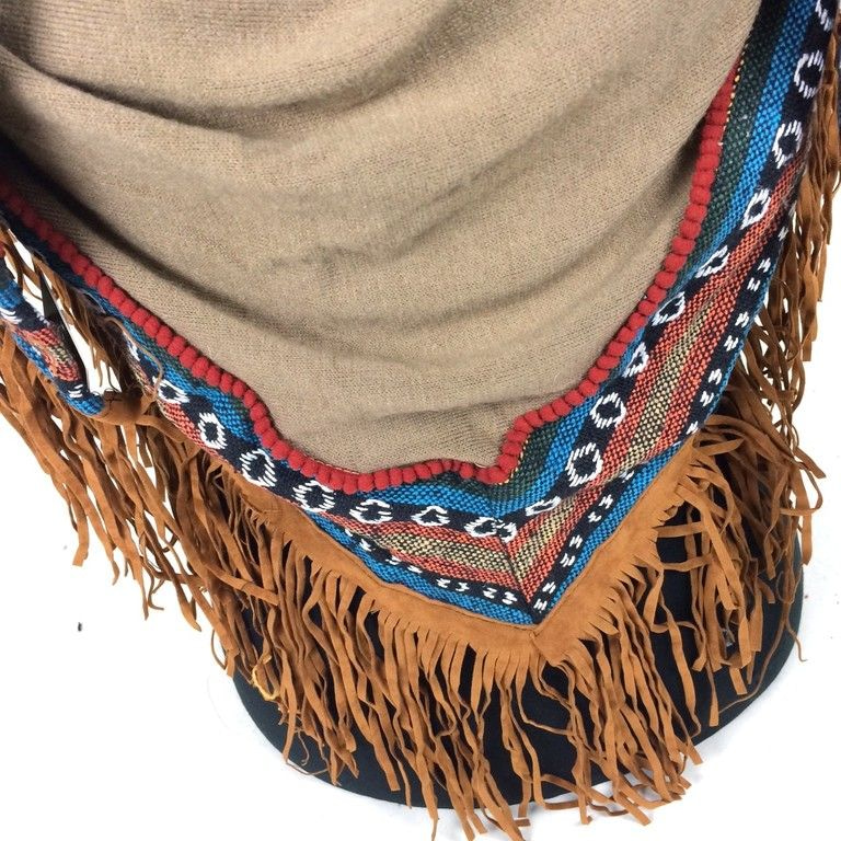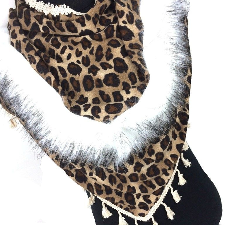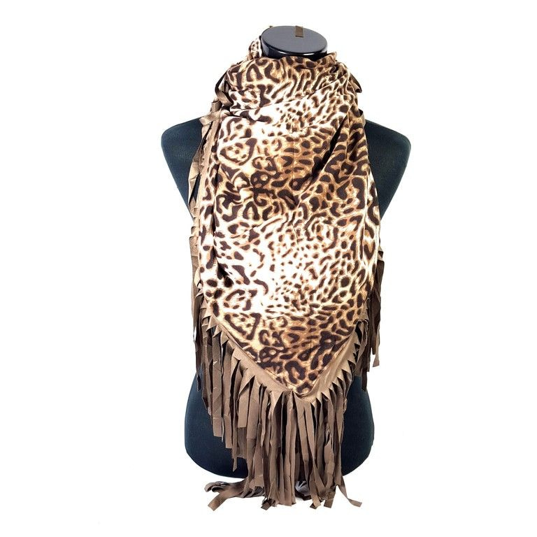 S_2302500 - LUXURY BROWN suede TRIANGLE SCARF TIGER WITH SCOOPS, FRILLS and mints (1st)