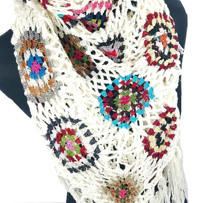 S_6118783G - TRIANGLE SCARF / SHAWL CROCHET - CREAM (1st)