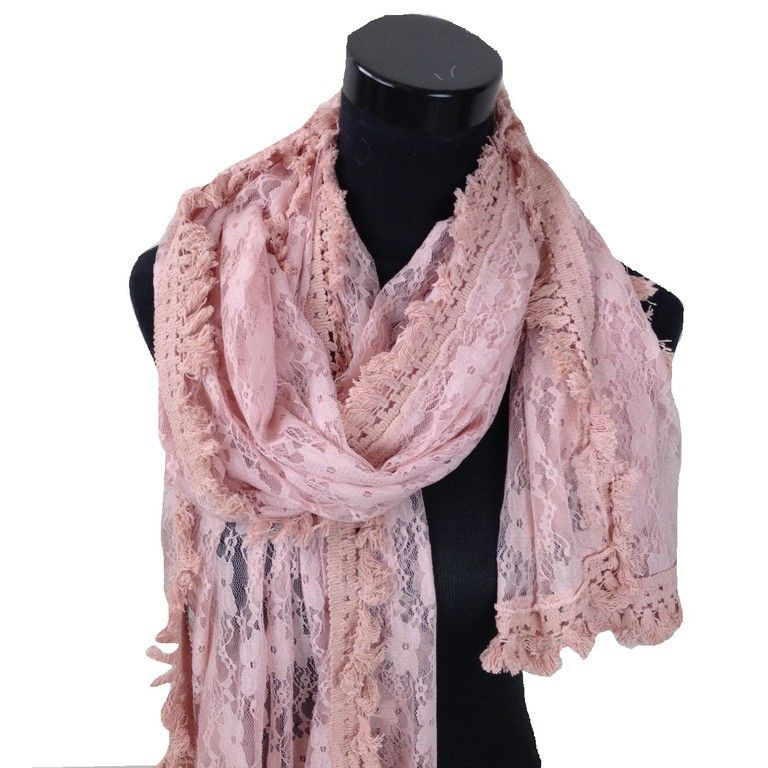 S_900014A - LUXURY old rose lace shawl with tassels (1st)