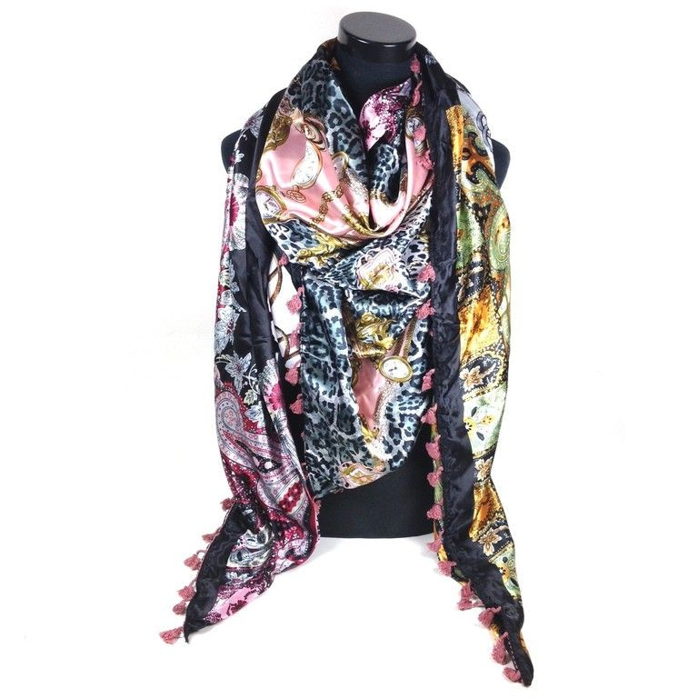 S_2374204 - LUXURY SCARF BLACK / WHITE WITH BULLETS AND FRILLS PINK (1st)