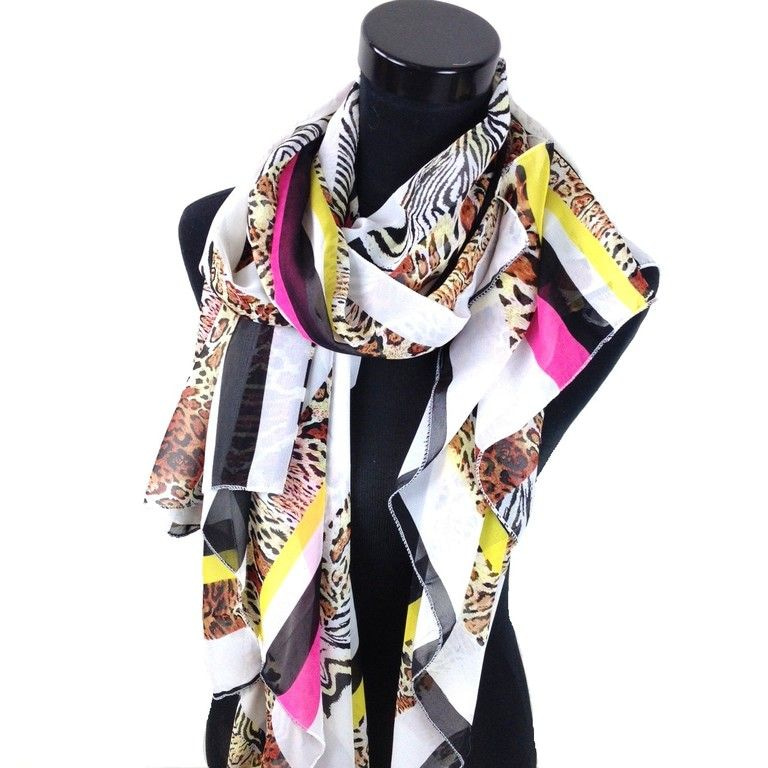 S_900013B - BEAUTIFUL SCARF WITH PRINT / STRIPES YELLOW / PINK (1st)