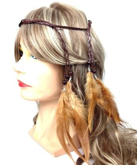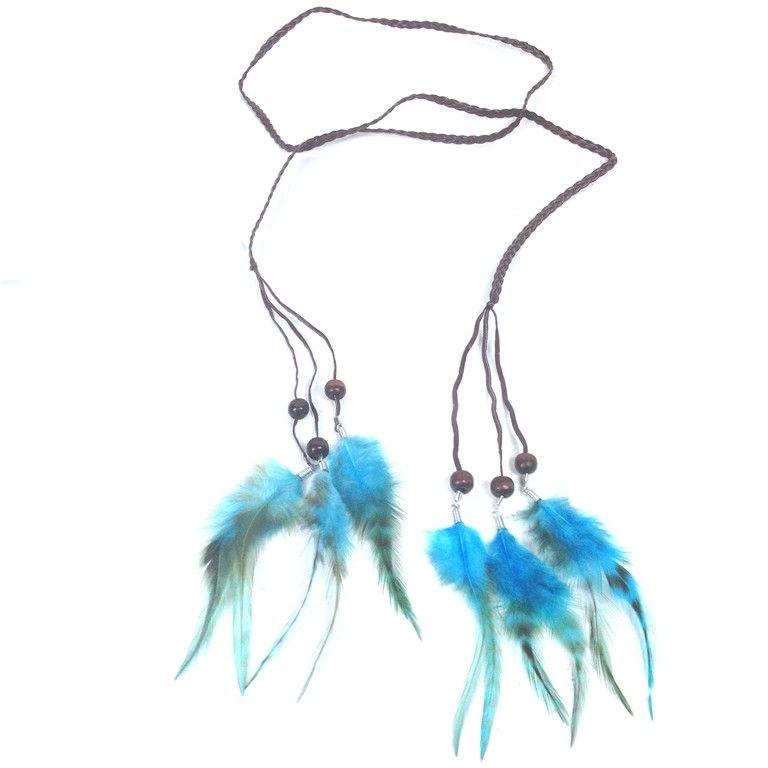 S_600046E - IBIZA LOOK HAIR BAND / FEATHERS NECKLACE BROWN (1st)
