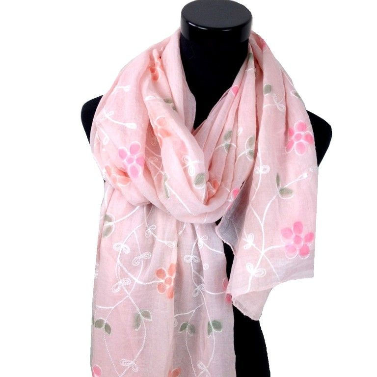 S_900004A - BEAUTIFUL SCARF WITH FLOWERS PINK (1st)