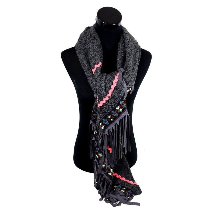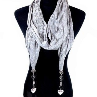 S_900020F - BEAUTIFUL SCARF WITH HEARTS GREY (1st)