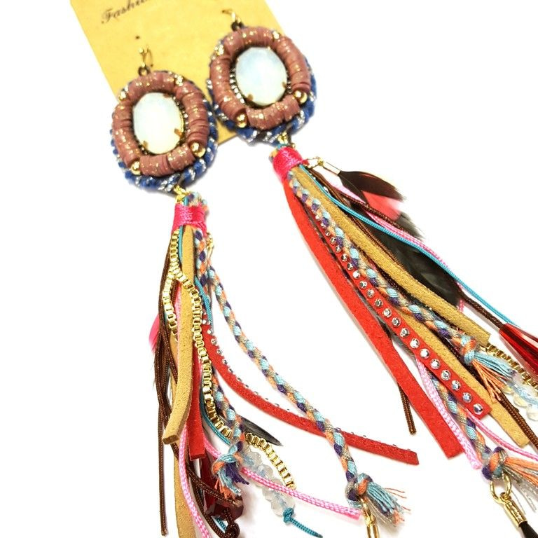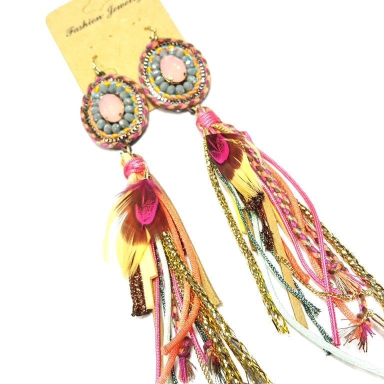 S_6445305 - LONG EARRINGS FEATHERS & BRAIDS - MODEL Pink / BLUE (1st)