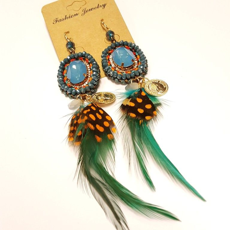 S_6448200 - LONG EARRINGS FEATHERS & mints - MODEL BLUE / GREEN (1st)