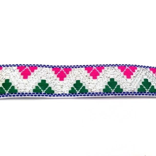S_600554 - WOVEN DECORATIVE BAND WITH PINK FLOWERS (20m)