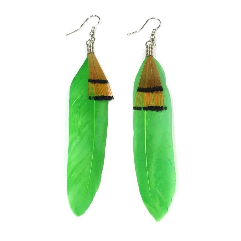 S_600752G - FEATHER EARRINGS BROWN / GREEN (1st)