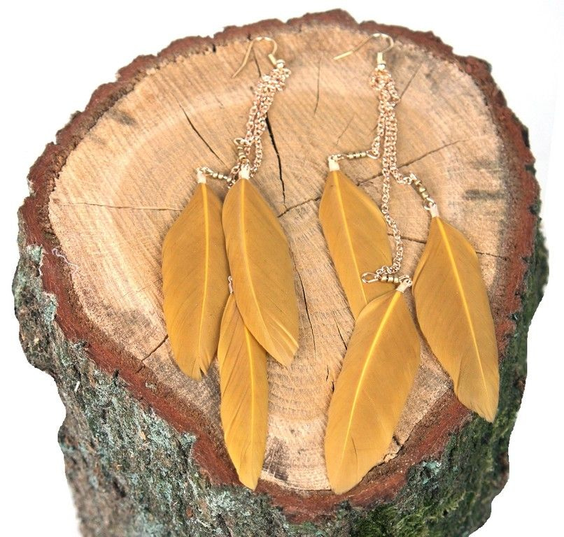 S_600752E - FEATHER EARRINGS BROWN / YELLOW (1st)
