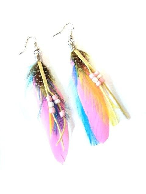 S_600034A - IBIZA LOOK EARRINGS WITH BLUE FEATHER (1st)