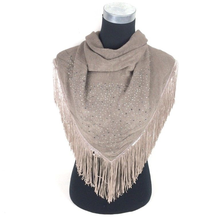 S_2577503 - BEAUTIFUL SCARF with tassels - TAUPE MODEL (1st)
