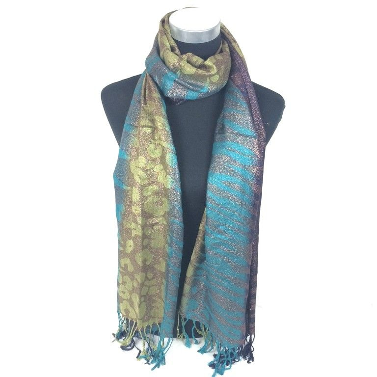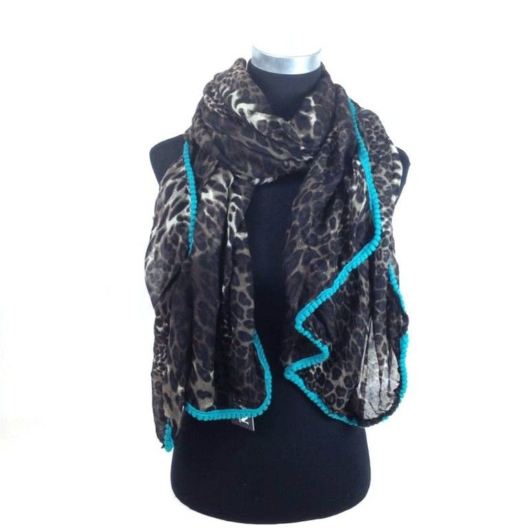 S_1857205 - BEAUTIFUL TIGER PRINT SCARF WITH TURQUOISE SCOOPS (1st)