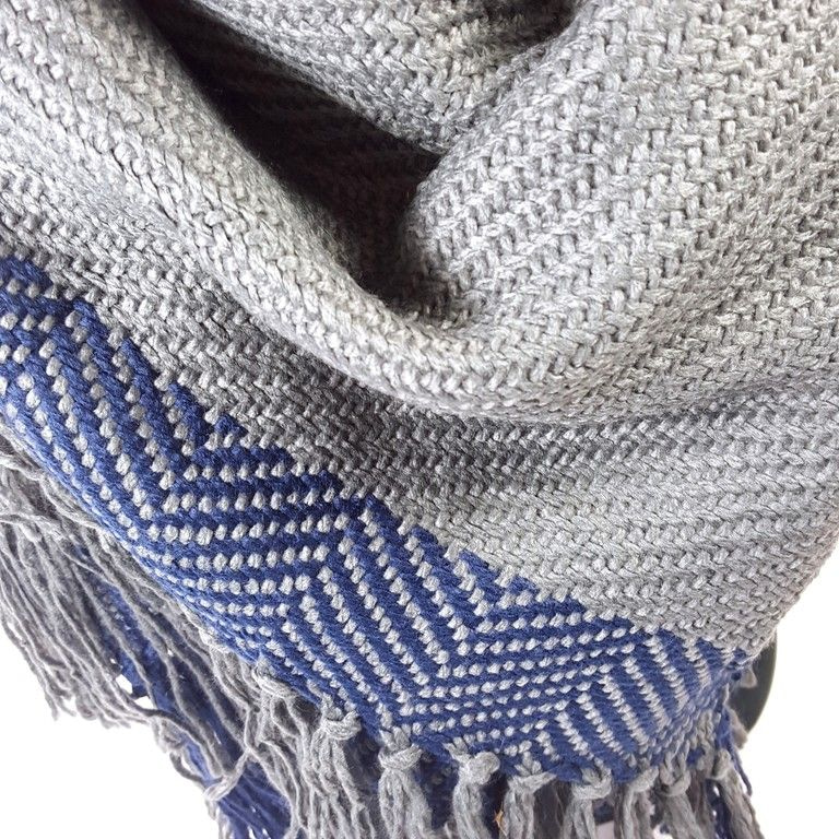 S_2541900 - BEAUTIFUL SQUARE GREY SCARF WITH BLUE RIDGE & FRILLS (1st)