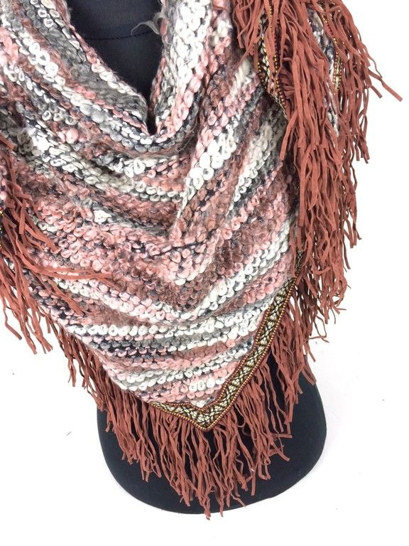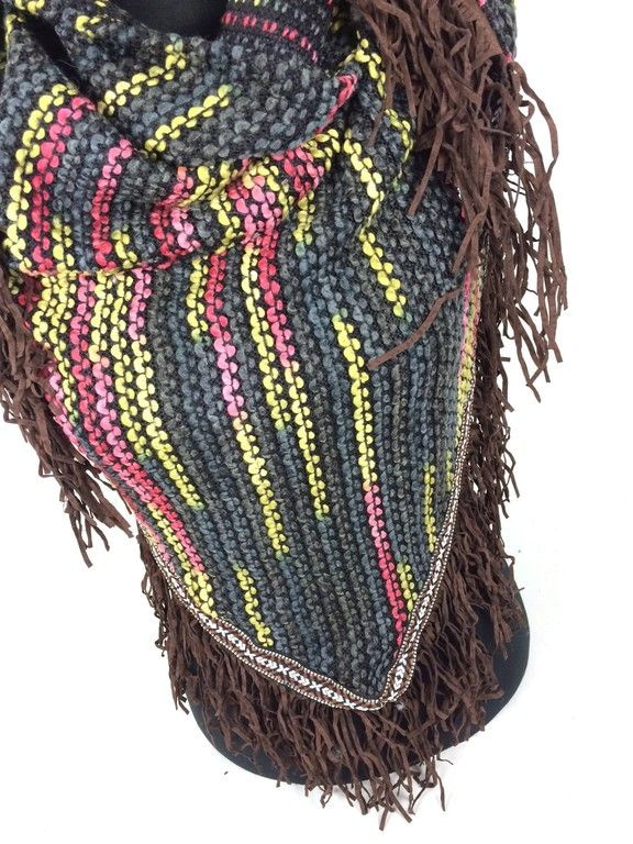S_1877024 - BEAUTIFUL TRIANGLE SCARF MULTI COLOR GREY FRILLS (1st)