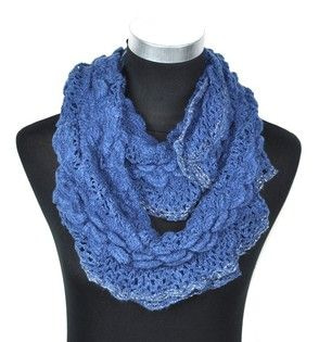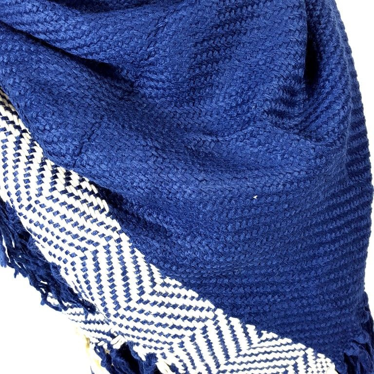 S_2541209 - BEAUTIFUL BLUE SQUARE SCARF WITH WHITE / BLUE RIDGE & FRILLS (1st)