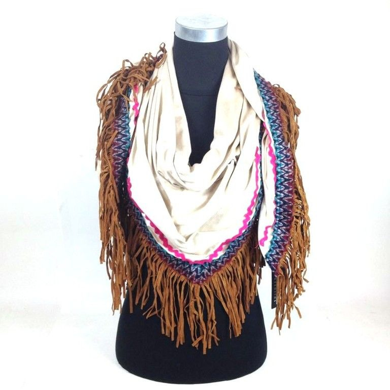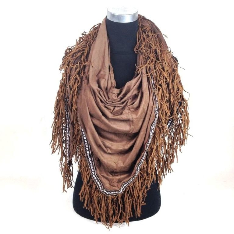 S_1842504 - LUXURY BROWN suede TRIANGLE SCARF WITH BROWN TRIM AND FRILLS BAND (1st)