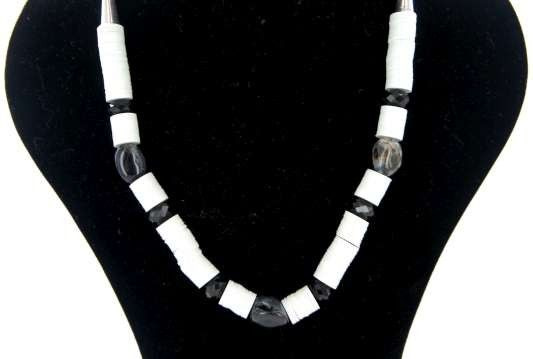 S_89731 - Art.nr: 89731 - NECKLACE BLACK / WHITE STONE (3pc)