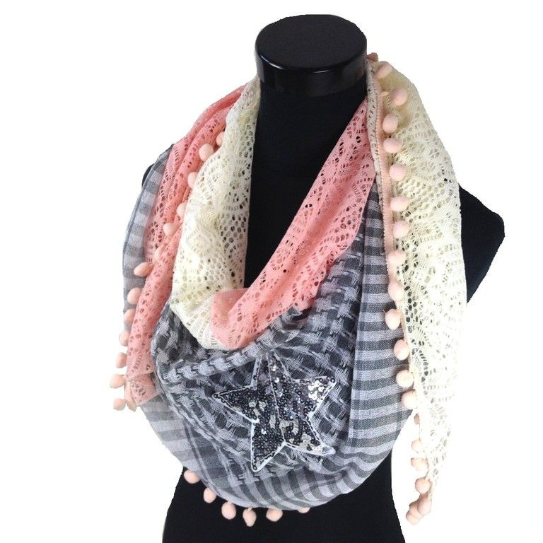 S_711813C - CHILDREN'S SCARF WITH LACE PINK / SALMON (1st)