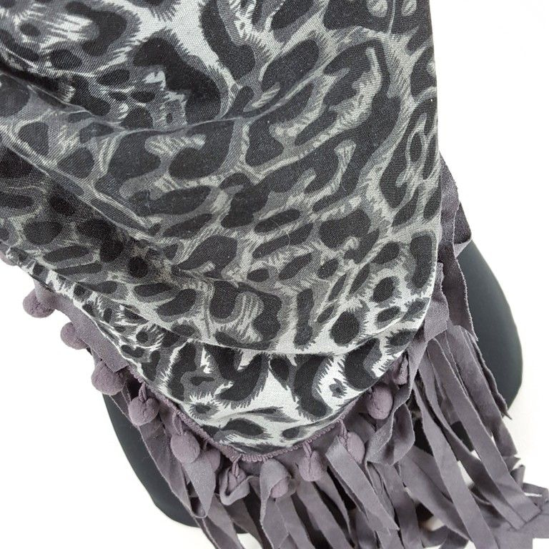 S_2544900 - LUXURY TRIANGLE SCARF LEOPARD PRINT GRAY - GRAY FRILLS & BULLETS (1st)