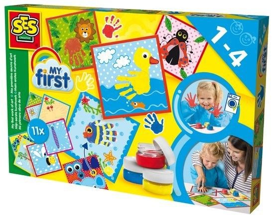 SES My first work of art is the perfect way for parents to make their children acquainted with paint. This set contains happy pre-printed cards, indicating where to place your hand (or foot). Apply grease and place it on the card. With the print details you make it all the way. The result is always good!
