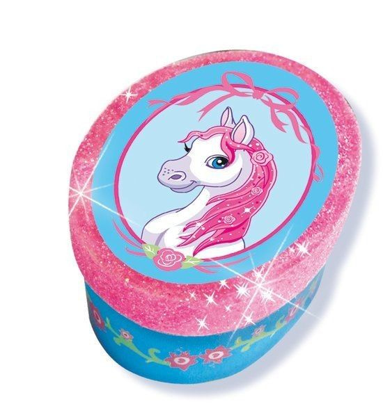 Contents: 4 boxes; glitters pink and silver; glue; brush and manual.