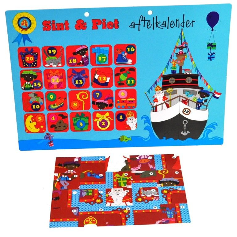 A nice countdown calendar for children. From November 15 the children can begin to paste stickers on the calendar. When they are ready, is the night before pakjesavond, and they have a nice picture of Sinterklaas and Zwarte Piet stuck together.