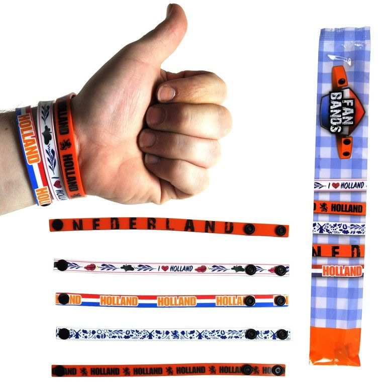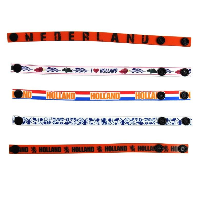 The bracelets are all in the theme Holland and come in five different types. This makes the bracelets are perfect for savings, King's, European Football Championship, World Cup and play the Olypische.