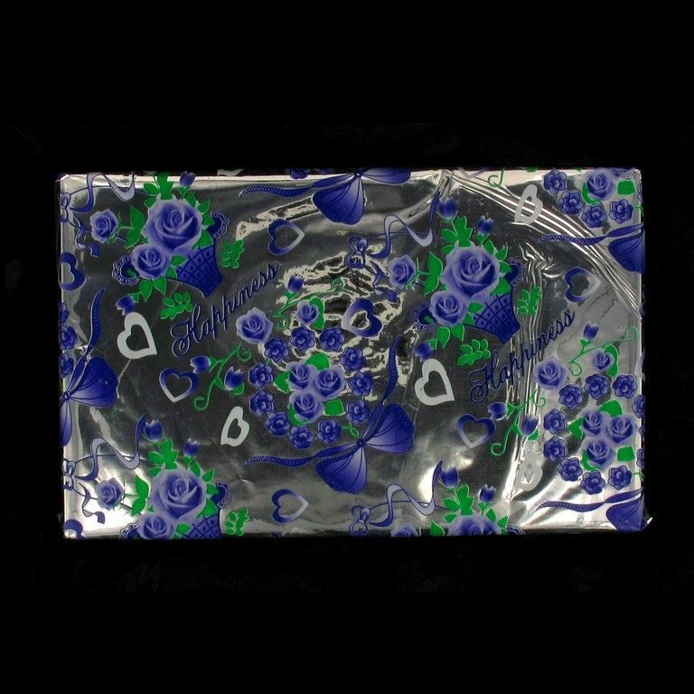 Luxury sheets of wrapping foil. Good for use with the smaller and more luxurious gifts. This film features a brilliant blue / purple print