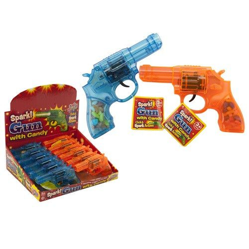 Tough revolver filled with delicious sweets. Shoot and get sparks at the course.