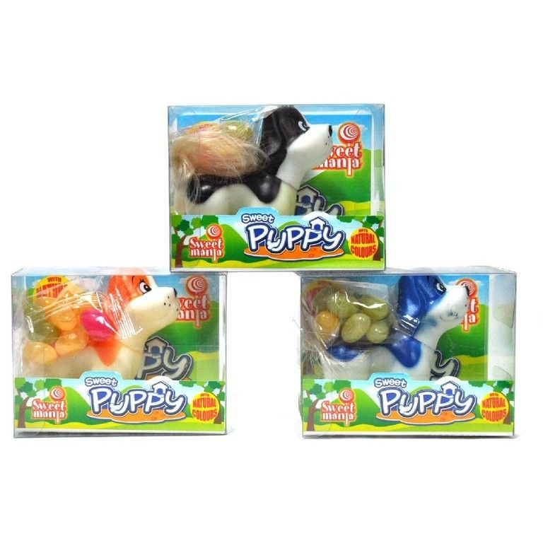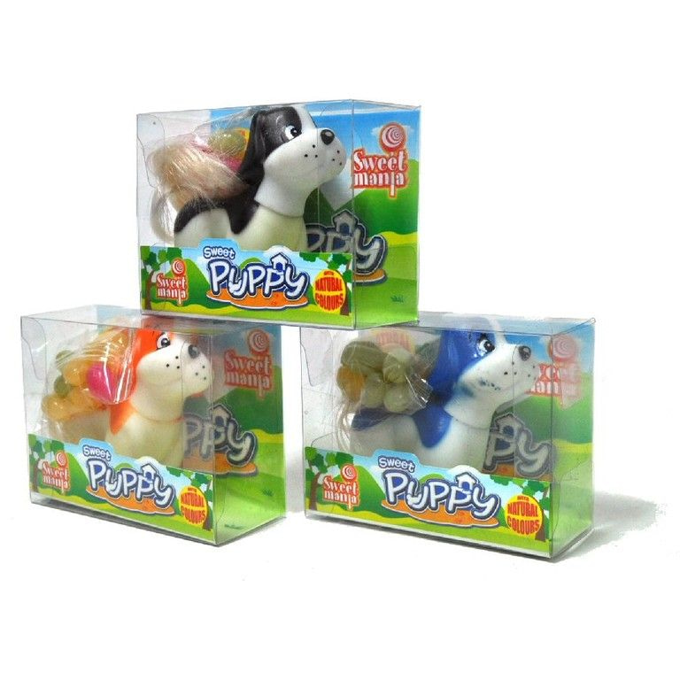 Cute dog wrapped in see-through packaging. Packaged together with delicious sweets.
