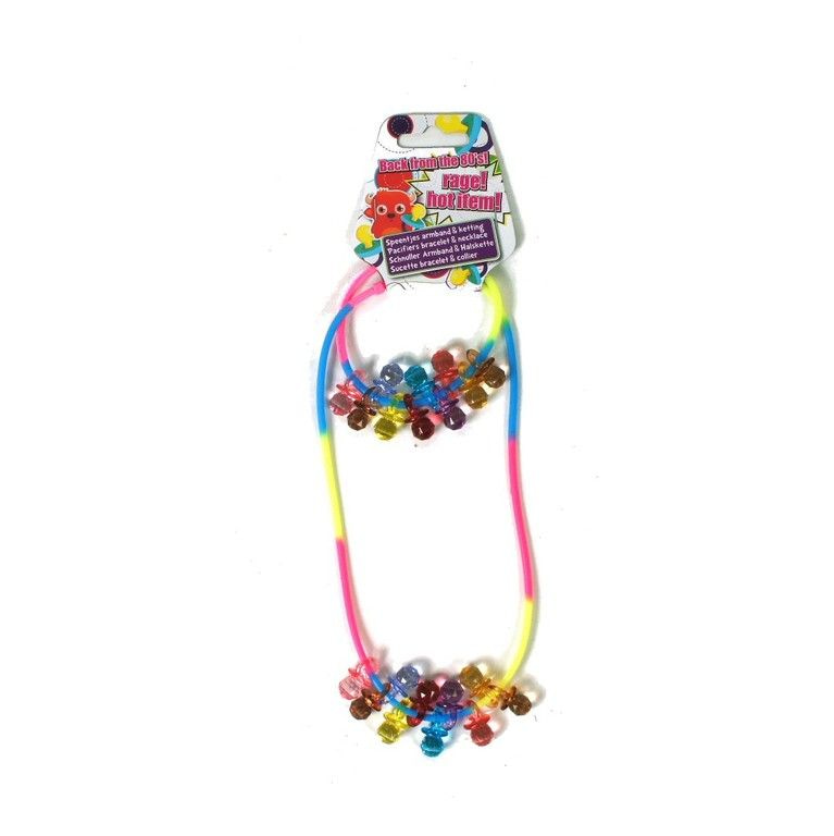 Back from the 80's, a colorful necklace and bracelet with small nipples on it.