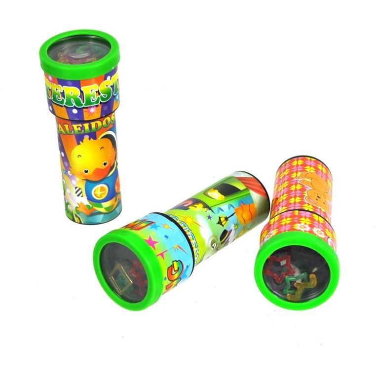 Small kaleidoscope, with beautiful prints on it. Look through the hole and turn the kaleidoscope around. Enjoy the wonderful characters that change in the kaleidoscope.